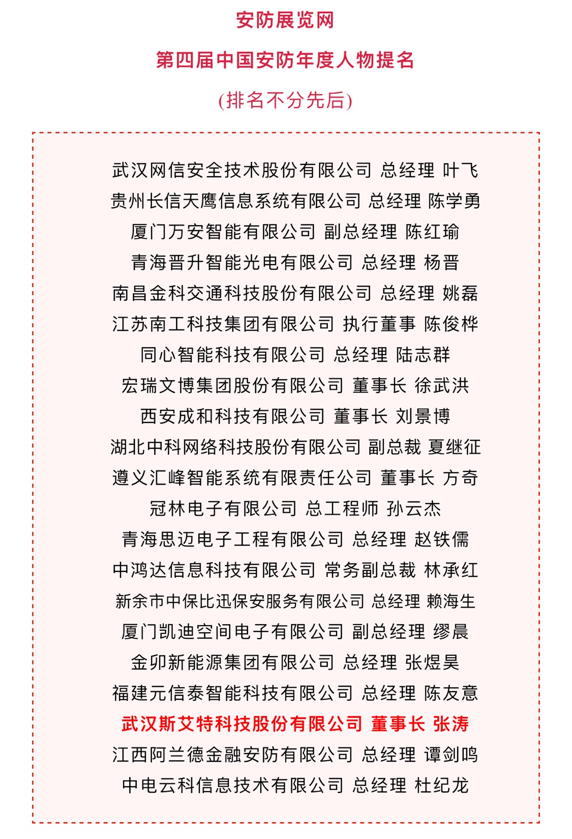 熱烈祝賀我司董事長張濤同志榮獲“第四屆中國安防年度人物提名”