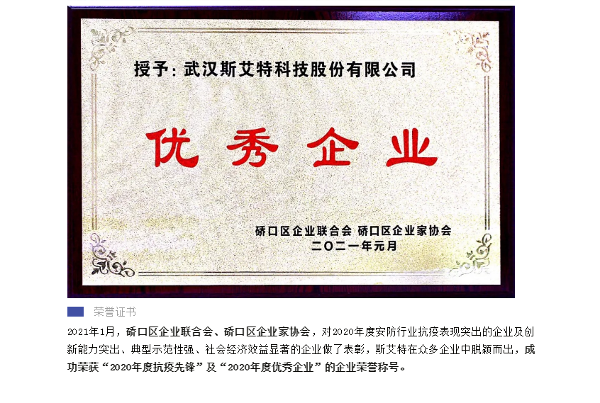 祝賀|斯艾特獲評2020年度“抗疫先鋒”及“優(yōu)秀企業(yè)”榮譽(yù)稱號(hào)