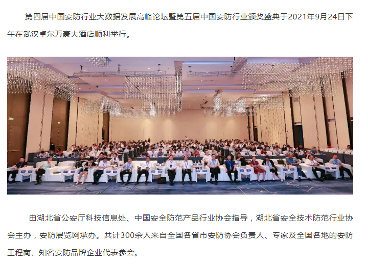 第四屆中國(guó)安防行業(yè)大數(shù)據(jù)發(fā)展高峰論壇暨第五屆中國(guó)安防行業(yè)頒獎(jiǎng)活動(dòng)順利舉行