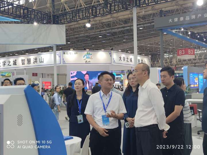 參展期間,武漢市硚口區(qū)委書記周耕、區(qū)委常委宣傳部部長唐斌、區(qū)委常委統(tǒng)戰(zhàn)部部長姚碧波、區(qū)委辦副主任胡正舉、硚口開發(fā)區(qū)書記郭婷婷、開發(fā)區(qū)副主任樂煜蒞臨我司展位指導(dǎo)工作。我司黨支部書記、董事長張濤向周耕書記及各位領(lǐng)導(dǎo)介紹本次參展的“智慧客運”、“智慧社區(qū)(園區(qū))”、“智慧校園”、“數(shù)字鄉(xiāng)村”、“智慧場館”、“智慧水利”、“平安城市建設(shè)與運維”場景應(yīng)用及公司今后發(fā)展方向。