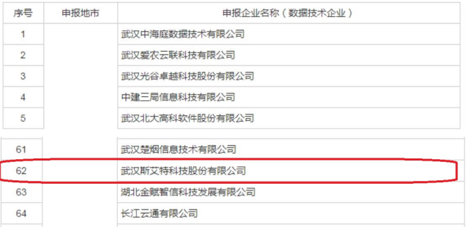 近日,湖北省數(shù)據(jù)局公示湖北省數(shù)據(jù)要素型企業(yè)(第一批)名單,武漢斯艾特成為首批登記入庫(kù)的“數(shù)據(jù)技術(shù)企業(yè)”。