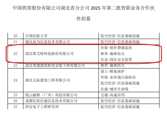 斯艾特科技成功入選中國鐵塔湖北分公司智聯(lián)業(yè)務(wù)合作伙伴