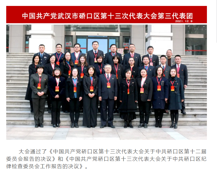 中國共產(chǎn)黨硚口區(qū)第十三次代表大會(huì)勝利閉幕